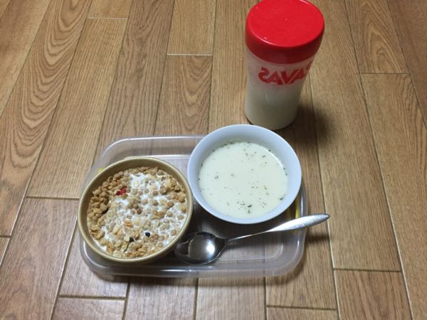 今日の朝食はフルーツグラノーラ、ポタージュスープとザバスウエイトダウンです。 ザバス ウェイトダウン ヨーグルト風味 336g >>大豆プロテイン