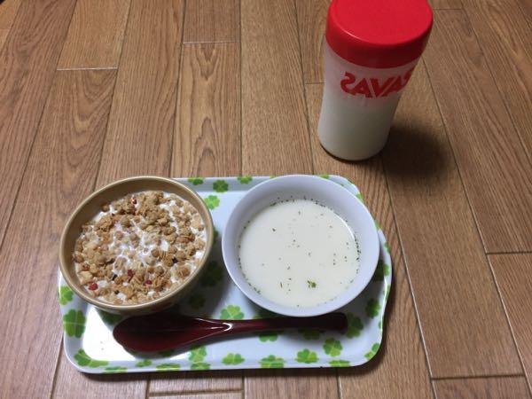 今日の朝食はフルーツグラノーラ、ポタージュスープとザバスウエイトダウンでした。 ザバス ウェイトダウン ヨーグルト風味 336g >>大豆プロテイン
