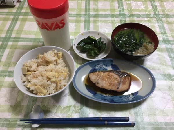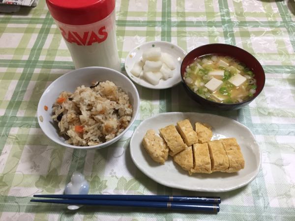 今日の朝食はかやくご飯の玉子焼定食でした。 ザバス ウェイトダウン ヨーグルト風味 336g >>大豆プロテイン