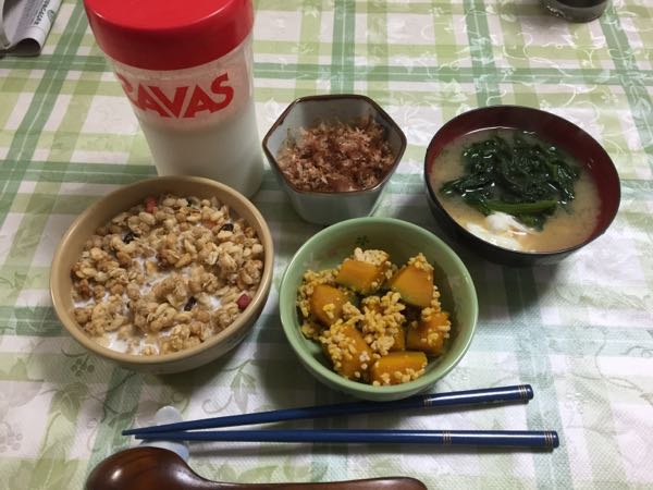 今日の朝食はかぼちゃの炊合せの炭水化物制限セットでした。 ザバス ウェイトダウン ヨーグルト風味 336g >>大豆プロテイン