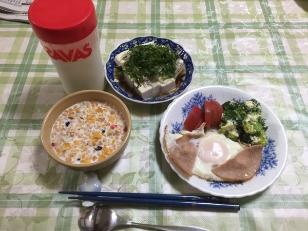 今日の朝食はハムエッグと冷奴のしらす大葉のせの炭水化物制限定食でした。 ザバス ウェイトダウン ヨーグルト風味 336g >>大豆プロテイン