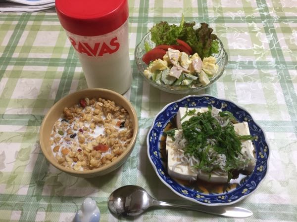 今日の朝食は冷奴しらす大葉のせとポテトサラダの炭水化物制限定食でした。 ザバス ウェイトダウン ヨーグルト風味 336g >>大豆プロテイン
