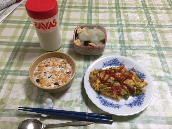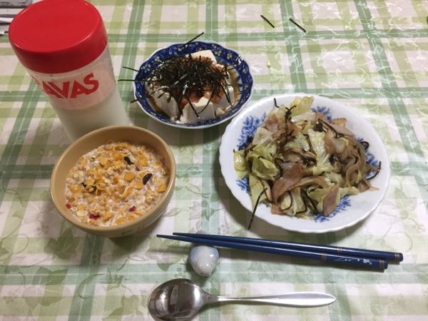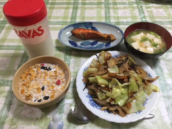 今日の朝食は野菜炒めと焼鮭の炭水化物制限定食でした。 ザバス ウェイトダウン ヨーグルト風味 336g >>大豆プロテイン
