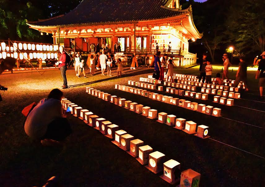万灯会とは、灯明(とうみょう)をともして祖先を供養し、生きとし生けるものの命に報恩感謝の祈りを捧げる法要のこと。醍醐寺では毎年8月5日の夜に営んでいます。18:30頃から1,000を超える置き灯ろうや提灯をともし、参道が照らされ、国宝の金堂や五重塔も特別にライトアップされます。色とりどりの優しい光のなか、ご先祖に感謝と祈りを捧げましょう。また、五重塔前の広場では「そうめん」の接待(先着500食)や、夜店も並び、多くの人で賑わいます。日程:2016年8月5日(金)18:00~20:30(予定) 料金:万灯会の時間内は無料 場所:醍醐寺住所:京都市伏見区醍醐東大路町22電話番号:075-571-0002拝観時間:9:00~17:00(受付終了16:30)※12月第1日曜日の翌日~2月末は16:00まで(受付終了15:30)拝観料三宝院、霊宝館、伽藍各600円(共通券1,500円)アクセス:地下鉄東西線「醍醐駅」下車徒歩約13分HPアドレス:http://www.daigoji.jp/