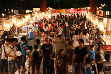 嵯峨天皇は檀林皇后(橘嘉智子)とともに相殿に祀られています。古くは嵯峨天皇の命日の8月28日に行われていましたが、現在では8月の最終日曜日に行われます。嵯峨天皇が相撲好きだったことから、小学生らによる少年相撲の奉納が行われ、打楽器演奏や吹奏楽の演奏の後、梅津六斎念仏保存会による六斎念仏踊、盆踊りで賑わいます。露店も多数出店されます。日程:2016年8月28日(日)9:30~少年相撲大会、16:00~打楽器演奏、17:00~吹奏楽演奏、19:00~六斎念仏踊、20:00~盆踊り大会(行事の増減、時間の前後有り) 料金:無料 場所:梅宮大社 住所:京都市右京区梅津フケノ川町30電話番号:075-861-2730参拝時間:境内自由 神苑9:00~17:00(受付終了16:30)参拝料:境内無料 神苑550円アクセス市バス「梅宮大社前」下車徒歩約3分HPアドレス:http://www.umenomiya.or.jp/