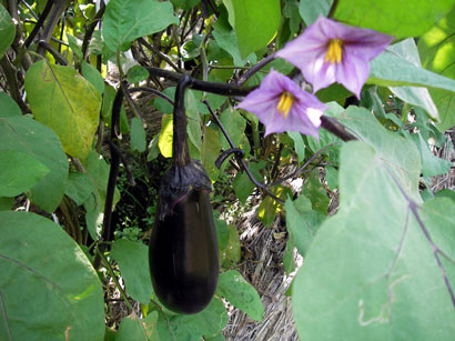 おはようございます。8月19日(金)の京都市北区はところにより曇り、気温29度です。皆さん、今日一日おきばりやす。今日の花言葉はナスで「つつましい幸福」です。