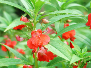 おはようございます。8月31日(水)の京都市北区は快晴、気温28度です。皆さん、今日一日おきばりやす。今日の花言葉はホウセンカで「快活」です。ホウセンカ(鳳仙花、学名:Impatiens balsamina)はツリフネソウ科ツリフネソウ属の一年草。東南アジア原産。観賞用によく栽培される。特徴茎は直立して葉は互生し、花は葉腋に2~3花ずつ付き、左右相称で夏に咲く。花弁とがくは各5枚で、下のがく片の後ろに距がある。本来の花の色は赤だが、園芸品種の花には赤や白、ピンク、紫のものがあり、また、赤や紫と白の絞り咲きもある。現在の園芸種は、大半が椿咲きと呼ばれる八重咲きである。また、距のないものもある。本来は草丈が60cmくらいになるが、近年草丈20~30cmの矮性種が好まれている。性質こぼれ種でもよく生えるほどの丈夫な植物で、よほど日当たりや水はけが悪くない限り、病虫害もほとんどなく育てやすい。発芽温度は比較的高いので、東京付近では4月下旬から5月に播種する。果実はさく果で、熟すと果皮の内外の細胞の膨圧の差によって弾性の力を蓄積し、弾けて種を遠くに飛ばす。自然に弾ける寸前となった果実は指で触るなどの些細な刺激でも容易に弾ける。属名Impatiens(ラテン語で「我慢できない」の意)もこのことによる。文化と伝承赤いものは昔から女の子が爪を染めるのに使ったため、ツマクレナイ、ツマベニ(爪紅)の名もある。沖縄では「てぃんさぐ」と呼ばれ、民謡「てぃんさぐぬ花」で有名。韓国では、爪にホウセンカの汁を塗り、初雪まで色が残っていたら恋が実ると言う伝承がある。触れるとはじける果実は非常に目を引く特徴である。花言葉の「私に触れないで」もそれに由来する。歌謡曲にもあるが、いずれも種を飛ばすことに絡めてある。受粉についてホウセンカやツリフネソウのようなすぼんだ横向きの形の花はマルハナバチなどの大型のハナバチによる受粉に適応した形態であるが、アフリカホウセンカのように上に向けて大きく開いた花はチョウによる受粉に適応している可能性が高い。日本ではよくイチモンジセセリが訪花して距に深く口吻を挿しこみ、雄しべや雌しべに額を押し付けてつけて、受粉に与っている。