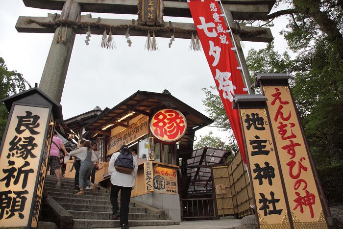 地主神社七夕祭では「七夕こけしお祓い」の神事があり、良縁達成・恋愛成就を祈願することから、特に若い女性やカップルから篤い信仰を集めています。織姫・彦星に見立てた1組の紙こけし(500円)に、自分と相手の名前や理想のタイプを書いて固く結び合わせます。それを本殿両側の「大笹」に吊して奉納し、恋愛成就の願掛けを行います。日程:2017年7月7日(金)14:00~ 料金:無料(要清水寺拝観料400円) 場所:地主神社