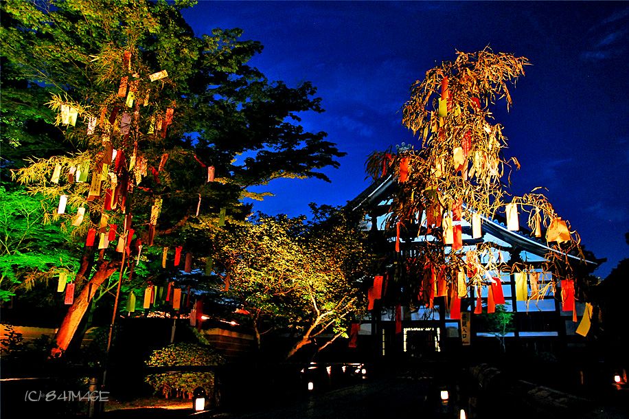 豊臣秀吉の正室・北政所(きたのまんどころ)が慶長11年(1606)、秀吉の菩提を弔うため建立した高台寺。夜の特別拝観の行事である七夕会では、京都市内の子供たちや全国の参拝者らが願い事を書き込んだ短冊が、およそ5メートルの大笹約20本に結び付けられ、境内に立てられます。優しい光でライトアップされ浮かび上がった笹の葉や短冊が風にそよぎ、幻想的な雰囲気が感じられます。日程:2017年7月8日(土)・9日(日)17:00~ 料金:600円(夜の特別拝観料)※短冊奉納(無料)については高台寺公式ホームページで告知 場所:高台寺