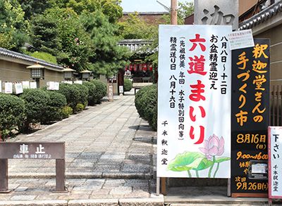 六道珍皇寺は平安の昔、「鳥辺野」と呼ばれた葬送地への道筋の入り口付近にありました。そこで、この辺りがあの世とこの世の分かれ道で、冥界との出入り口「六道の辻」ともいわれ、お盆のご先祖は必ずこの辻を通り家に帰ると信じられ、お迎えに詣でる風習が始まったのが六道まいりの由来です。京都の盂蘭盆行事ではまず珍皇寺へまいり、迎え鐘をついてお精霊(しょうらい・先祖の霊)さんをこの世にお迎えします。この鐘の音はあの世まで響くとされ、ご先祖様はこの音を聞いて一年振りの帰省をされるのだそうです。日程:2017年8月7日(月)~10日(木)6:00~22:00 料金:境内無料 ※期間中は堂内・庭園などの拝観不可 場所:六道珍皇寺