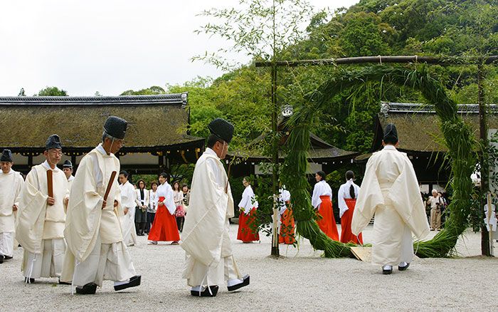 かつて宮廷では12月大晦日と6月晦日の年2回、「大祓い」の神事が行われていました。6月の晦日、つまり30日に行われるのが「夏越祓(なごしのはらえ)」です。一年の前半の罪や穢れを祓い、酷暑で始まる一年の後半を、無病息災で過ごせるように祈願する神事です。この日には、6月の和菓子の代表ともいうべき「水無月」を食べる風習があります。水無月は宮中の貴族が氷室の氷を食べて暑気を祓ったことにちなみ、三角形をした白の外郎生地に悪魔祓いとして小豆を載せ、氷をかたどった菓子です。神社の鳥居の下や境内には茅で作られた大きな輪が用意され、輪をくぐって穢れを祓う「茅の輪くぐり」が行われます。日程:2019年6月30日(日)(時間は各社によって異なります) 料金:無料 場所:上賀茂神社、北野天満宮、貴船神社、白峯神宮ほか市内各社