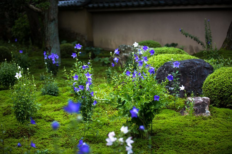 四季折々の花の寺として知られる天得院は、臨済宗の大本山東福寺の塔頭です。6月に見頃を迎えるのは桔梗の花。その開花に合わせて、「桔梗を愛でる特別拝観」が行われます。桃山時代に作庭の枯山水庭園一面を覆う苔と、凛と咲く桔梗の花の青と白のコントラストを楽しめます。予約制でお庭を眺めながら昼食(精進料理)を堪能することもできます。日程:2019年6月25日(火)~7月10日(水)10:00~16:30(受付終了16:00) 料金:500円、抹茶とお菓子800円(終日)、精進料理「花精進」3,780円(11:00~14:00・要予約)予約先:075-361-1231(ハトヤ瑞鳳閣) 場所:東福寺 天得院