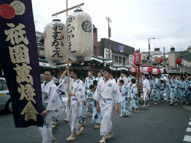 「お迎提灯」では、「神輿洗式」の神輿を迎えるために提灯を立てた行列が巡行します。神輿洗式は、鴨川の水を使って神輿を清める神事です。八坂神社から道しらべの大たいまつが出発、続いて3基の神輿のうち素戔嗚尊(すさのをのみこと)が乗る中御座神輿1基を「ホイット、ホイット」と掛け声を出しながら担ぎ、四条大橋の上で神輿を神用水で清めます。この水が体に振りかかると、無病息災で暮らせるといわれています。日程:2019年7月10日(水)お迎提灯 16:30~21:00神輿洗式 20:00~ 料金:無料 場所:お迎提灯:八坂神社→河原町四条→寺町通→東大路通→神幸道→八坂神社 神輿洗式:四条大橋 電話:075-561-6155(八坂神社)
