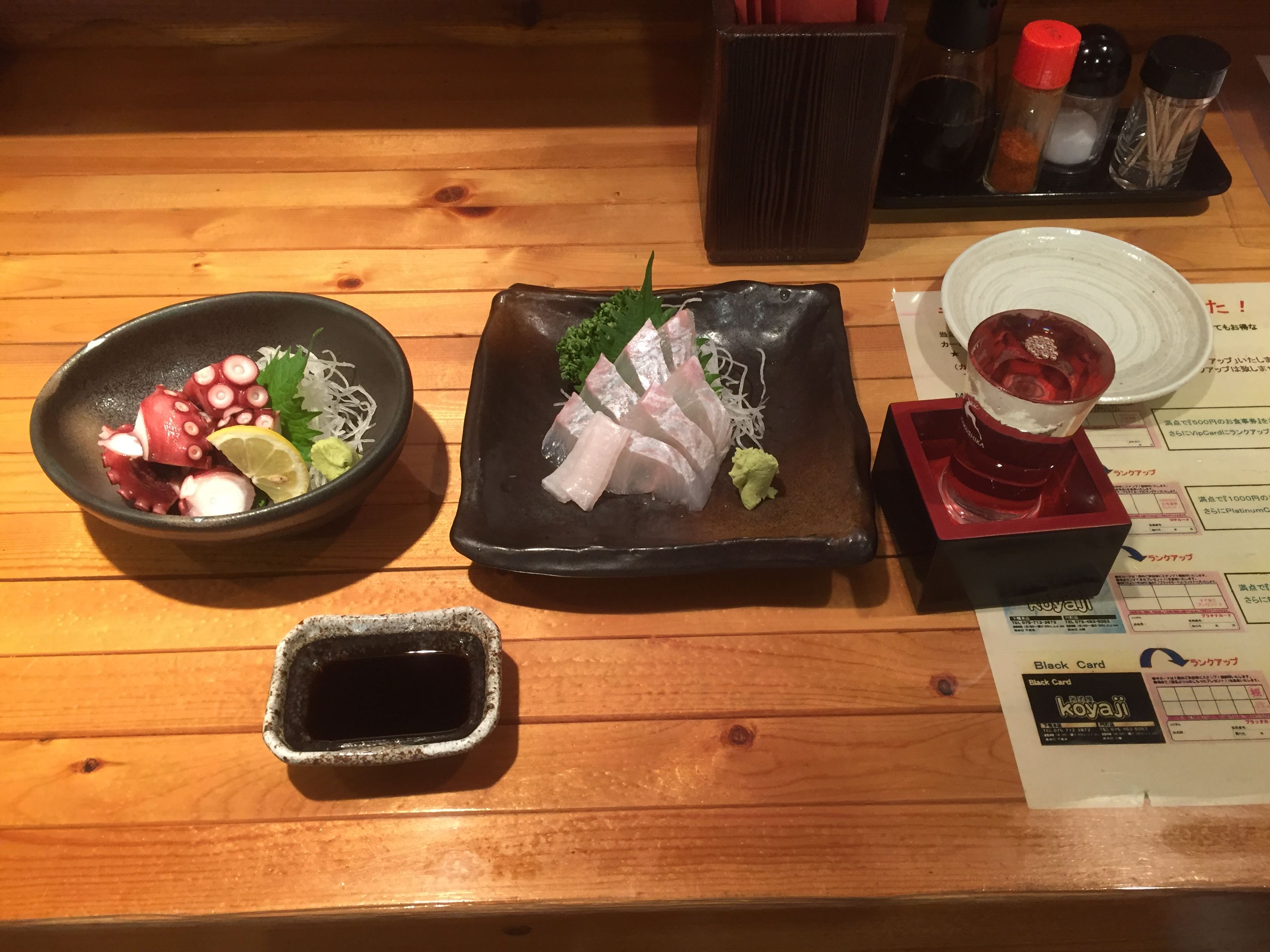 初夏ですので平目の刺身と蛸ぶつをチョイス、お酒は雪の茅舎を選びました。