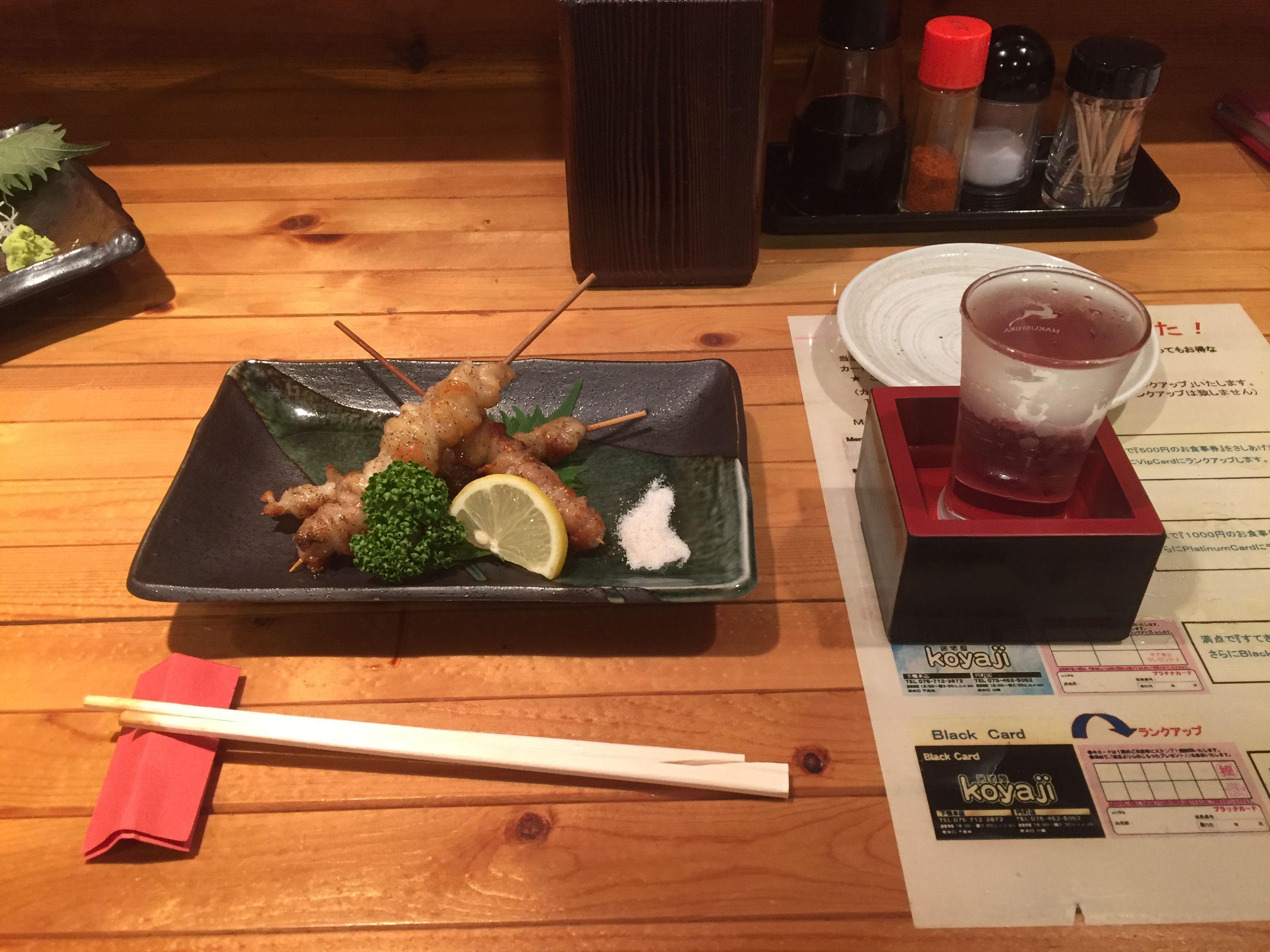 次に選んだのは皮塩焼き、お酒は鳥海山にしました。なぜって?鳥には鳥ということです。(笑)