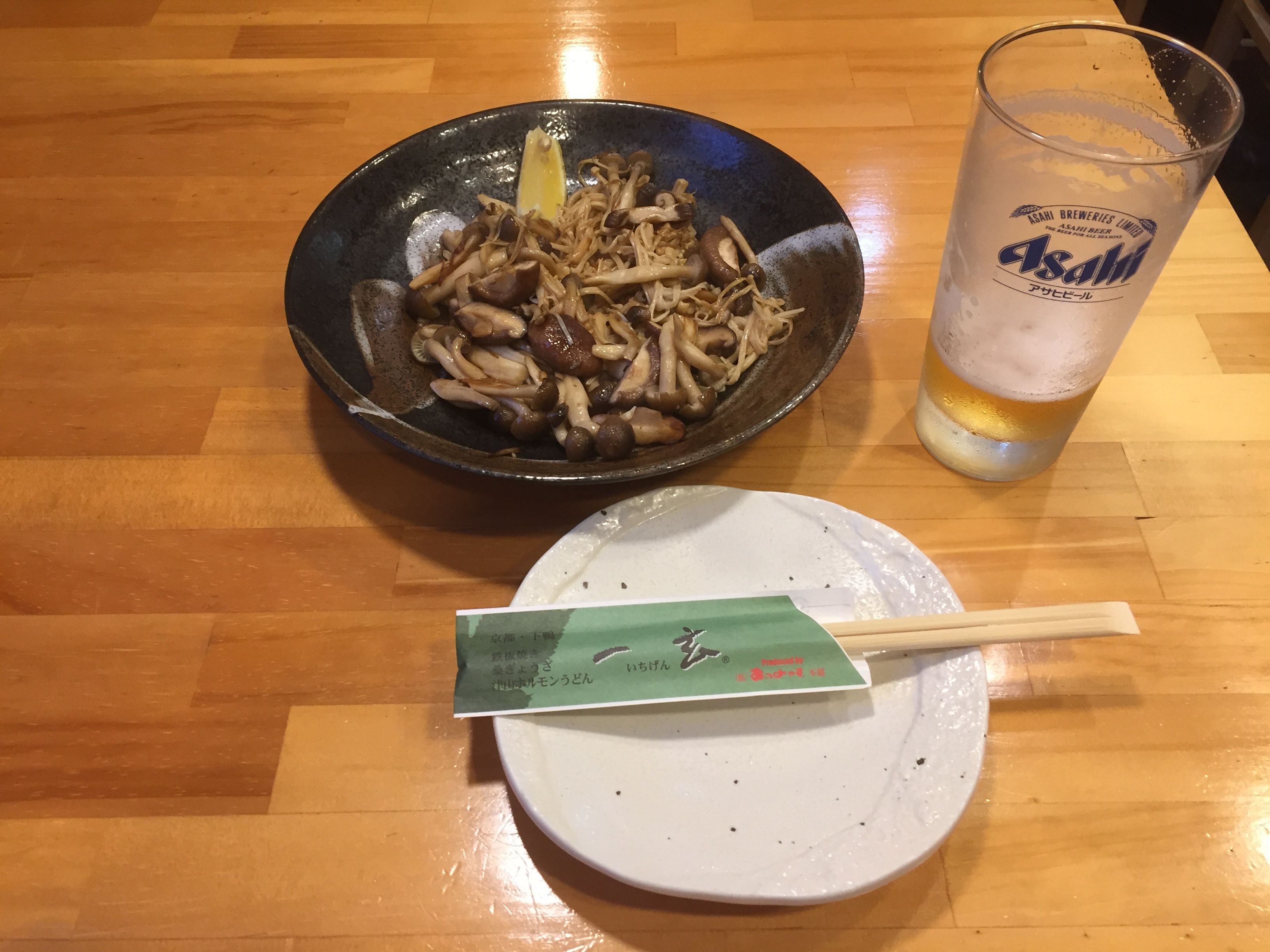 まずは「きのこバター炒め」をオーダー、ビールがグイグイ進みます。
