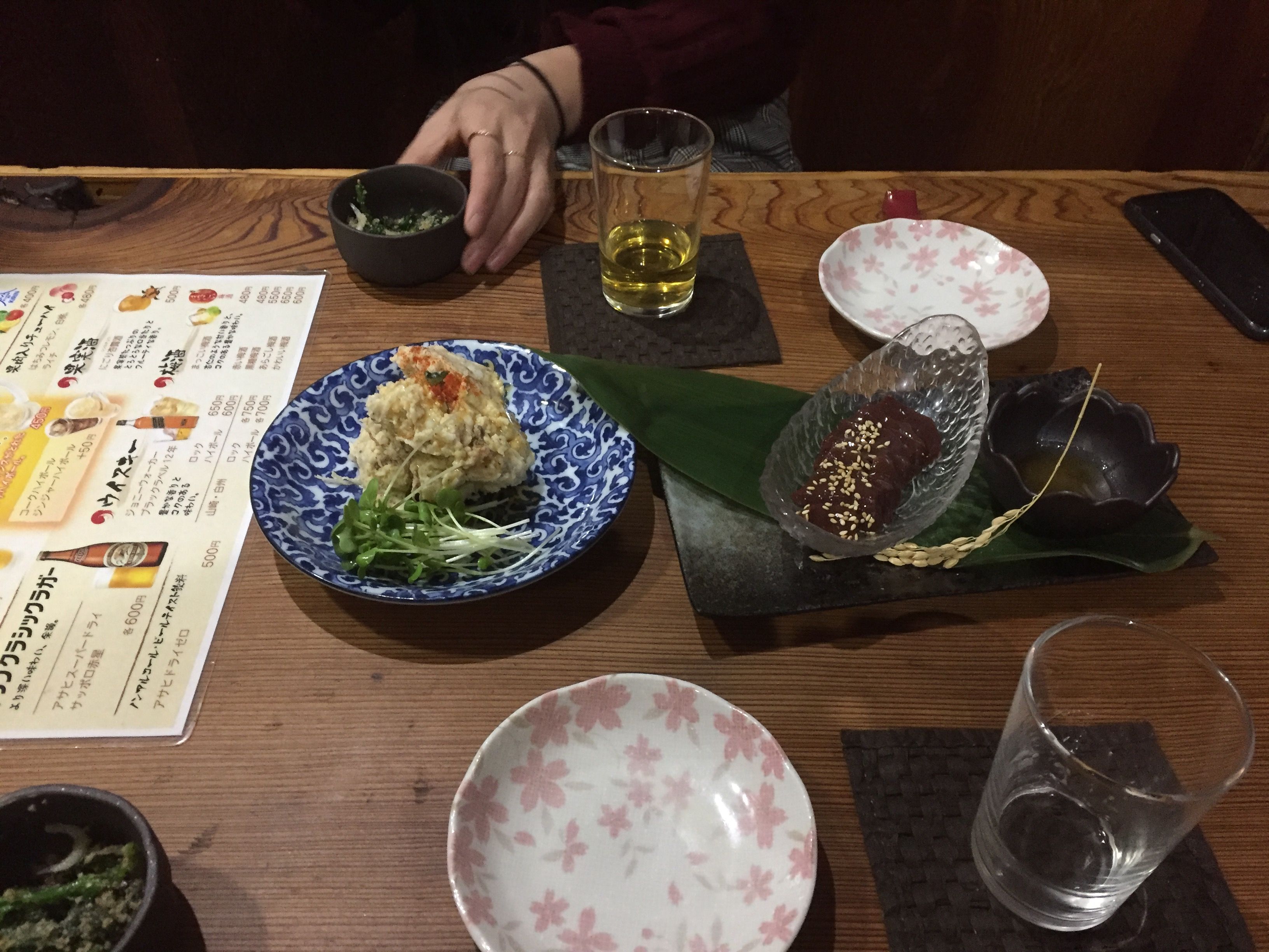 キリンラガークラシックを呑みながらオーダーを済ませると、まずは馬肉のポテトサラダと生レバーがでてきました。今やは生レバーは公式には馬しかたべることができませんので貴重です。