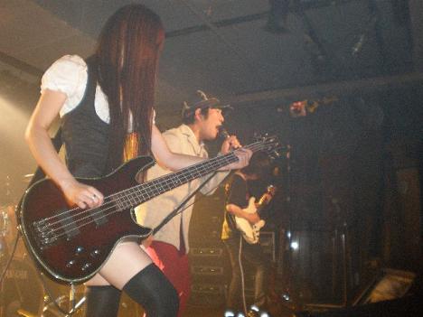 blackって名づけたこのストラトは、昨年の誕生日にいただいた大好きなギター thanxxx Takashi-samaほぼ毎日弾いてますが最近はもっともっと弾いてます。blackをリーダーに2音半下げに調整してもらいました。それでカーカスの「HEARTWORK」を練習してるの。http://jp.youtube.com/watch?v=B7lP30tSZF0容赦なく速いですぅ 出だしから速くて弾けないわ~。泣きのギターどころではなく 私が泣いてます。でも年内には弾けるようになりたいです。 先生どうかよろしくお願いします のちのちカテドラルも...10年早い?まさか このギターを2音半下げにするとは思ってなかったかもしれませんが... CARCASS弾くこと=愛ものすごく大切にしています。--------------------------------------------------------------------日曜(6/28)のライブは...ステージ広いって聞いてましたが わりと狭かった。私どこに立つべきか迷いました。いつもキーボードの横なんだけど...それで調子にのって前にでたりしてたら手元が真っ暗でフレットの丸い点が見えずたくさん音を外してしまいました。おさえる場所を感覚で覚えないとダメなのですね。ライブも打ち上げも とても楽しかったですHEARTS OF RAINBOW 画像提供エレ様