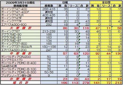 日航と全日空の所有する航空機を表にすると下図のようになる。 見ての通り日航は全日空に比べると、大型機が多く、中型機が少ない。また、小型機は多い。これは日航がより強くハブ&スポーク輸送モデルを志向している為と思われる。 ハブ&スポーク運輸モデルとは、中・小型機で地方空港から人・物をハブ空港へ集め、大型機で目的地近傍のハブ空港へ輸送する方法である。プロフィットセンタ(利益発生場所)は大型機輸送、どうしても大型機が多くなる。 イメージ図にすると下図の様になる。 ハブ&スポーク輸送モデルは、輸送流量が変動しなければ、ハブ空港間輸送を大型機で最適化することによりコストを最小化できる。しかし、輸送流量が大幅に変動する場合は、この限りではない。非常に大きなコスト負担リスクが存在する。 ハブ&スポーク輸送モデルは、地方空港―ハブ空港間、ハブ空港―ハブ空港間、ハブ空港―地方空港間が論理的に結合している為、各路線の輸送流量変動幅が一定幅を超えなければ、ハブ空港で輸送流量変動幅が相殺される。しかし、輸送流量変動幅が一定幅を超えてしまうと、ハブ空港を介して、輸送網全体に波及し、輸送流量変動幅が増幅され、爆発的な損失が発生する場合がある。 日航が繰り返し経営危機に見舞われるのは、日航がハブ&スポーク輸送モデルを採用している為だと考えている。SARS、同時多発テロ、鳥インフルエンザ、金融危機・新型インフルエンザと、ここ10年、不測の事態にこと欠かない。ハブ&スポーク輸送モデルを採用する限りにおいて日航の損失は避けられなかったのではと見ている。 国交省は、国内・国際航空網をハブ&スポーク輸送モデルで構築し、そのメインキャリアに日航を割り当ているだから、日航には、ハブ&スポーク輸送モデル以外の選択枝は存在しない。これは今も変ってない。 経営上は、ハブ&スポーク輸送モデルにおいて、『輸送需要変動の下限で機材の最適化』を行い、『需要変動リスクの最小化』を図る必要がある。しかし、 交通行政上は、『輸送需要変動の下限で機材の最適化』は『航空交通網の必要輸送能力を下回る』ことであり受入れられない。 結果、国交省は日航に赤字リスクを被せることで適正輸送能力を維持する道を選択したのだと見ている。 日航は、過剰な機器・設備構成のハブ&スポーク輸送モデルで度重なる輸送需要変動の直撃を受けて、今回の経営危機になっている。個人的には、この危機は日航の経営者の問題ではなく、国交省の航空行政の失敗が主因と見ている。これまでの行政上の反省もなく、国交省が音頭を取って再建しようとしている。 ちょっと、日航再建は厳しそうだとみている。 海外に目を向けると、ハブ&スポーク輸送モデルのメガキャリアが対応していない路線をローコストキャリアがポイント・ツー・ポイント(point-to-point)輸送モデルで担っている。どうみても、ハブ&スポーク輸送モデルで『航空交通網の必要輸送能力』を確保し航空網を構築するには、ローコストキャリアが必須と見られる。然るに、日本の場合は、ローコストキャリアを育てずにメガキャリアである日航がハブ&スポーク輸送モデルで全国一律輸送サービスを担うと言う無茶な輸送体系となっている。 日航の年金を再建上の問題とする意見を見聞きするが、個人的には、国交省の航空行政が再建上の最大の問題だと考えている。国交省が航空行政の方針に転換しない限り、日航が蘇ることはないと思っている。一時的に取り繕うことはできても、メガキャリアとしての輝きを取り戻すことは不可能だろう。 政権が代わり国交省の航空行政方針の転換が期待されただが、はかない夢に終わったように見える。前原国交相の羽田ハブ化発言は日本は今後も、ハブ&スポーク輸送モデルで航空網を構築して行くことを意味し、日航の再建への対応の仕方を見ると、今後も、日本の航空網のメインキャリアを日航としたい様子が透けて見える。 国交省の言う国内・国外航空旅客需要の伸びは、人口動態を考えれば、あり得る話とは思えない。羽田・成田であれ滑走路の増設など愚の骨頂・・・韓国の仁川空港をハブ空港として使えるなら使わせてもらえばいい。お金をかけて国内空港を整備する必要はない。 また、長期需要減少が予想されるのに、税金を突っ込んでメガキャリア2社体制を維持することがホントに必要なのか甚だ疑問。 個人的には日航は解体して事業毎に売却するの方がいいと思っている。経済と株式経済ニュース株取引