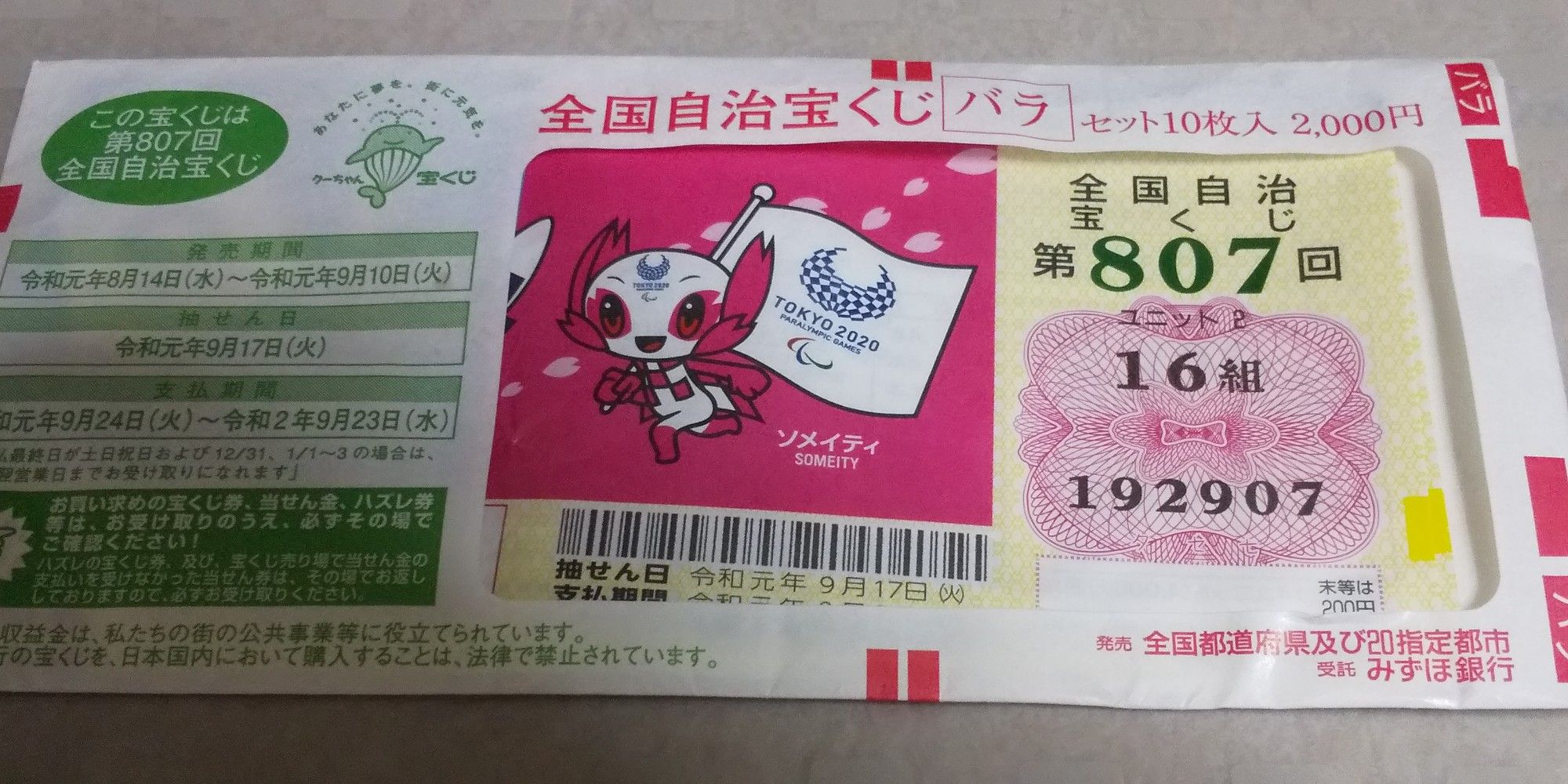 皆さんは占いを信じますか?わたしは占いフリークと云うわけではないですが、無料の占いアプリで、毎日更新される全体運とラッキーカラー、ラッキーナンバーはチェックするのが日課になってます 以前2~3回程宝くじ当たるかも?と出てたので買ってみたらたまたまかもしれないけど、当たったりしてたので… んで今回東京2020協賛宝くじが発売されたタイミングで、感が冴えてるので宝くじでも買ってみたら?と云うサイトの文言が👀 久しぶりに買い物の帰りに買ってみました(笑) バラで10枚✌ 売り場の人の話では、連バラとは30枚以上購入の人のみ末尾の数字が0から9まで連番になっている つまり、30枚には確実に末等が3枚は入っている計算です 大安吉日でも無いのに並んで買ってる人結構居ました(給料日前に運試し) どうか大きく当たりますよーに←売り場の人の決まり文句!? 高額当選なんて夢ですが、もし本当に当たったら住み替えの費用にしたいと思います ←少しでも足しになったらありがたいなぁ…なんて💧👀 まあ、夢を買っているワケですから✨