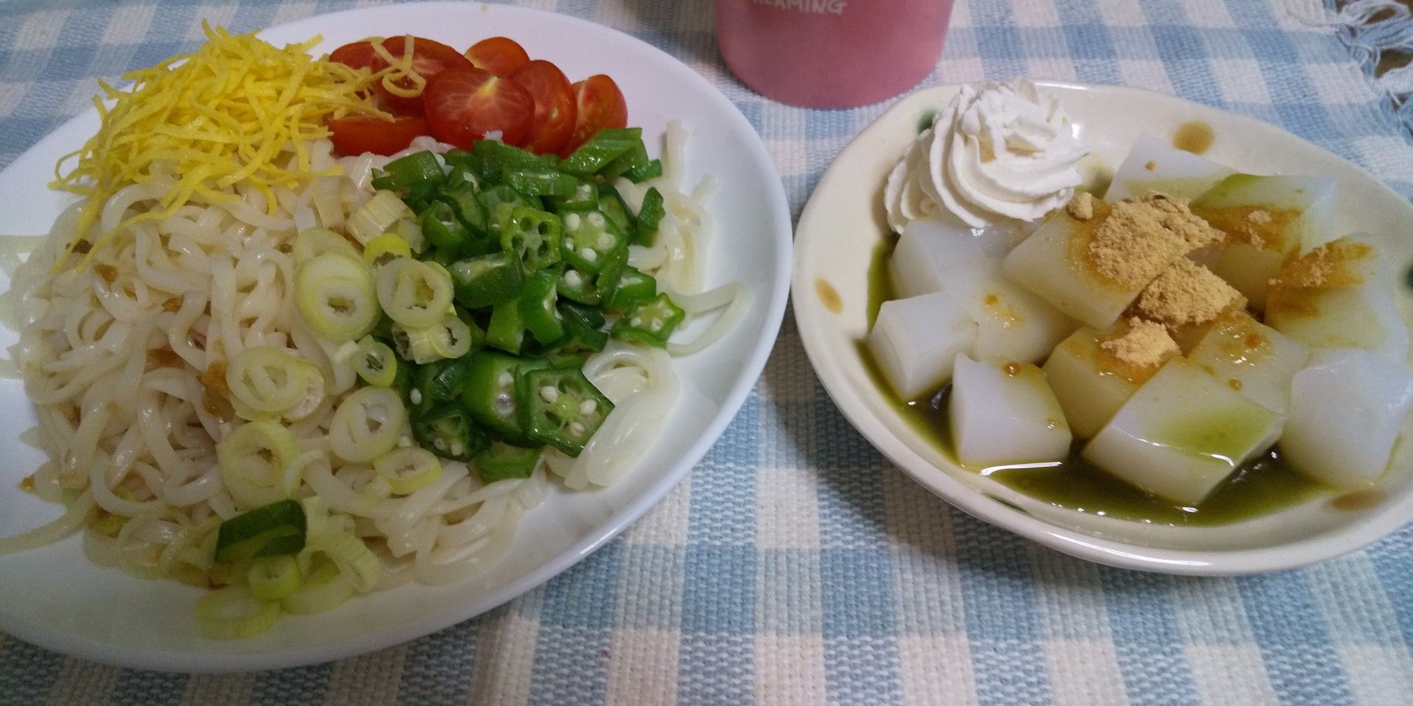 今日は旦那さんが出勤だったので、朝起きたものの昨日遅くまで起きてたせいか 少し横になったら10時過ぎまで寝てしまった(^_^ゞ 余り食欲無かったけど、食べないと体力無くなるので、冷蔵庫にあったうどん(細麺タイプ)ですだちおろしうどん作りました 有りもので簡単に作ったのに冷たい麺とつゆがBESTな組み合わせでした😋 暑いので、やはり麺類食べたくなりますよね🎵🍜🍝 コンビニスイーツ🧁特に最近はわらび餅シリーズにハマッてます😄 ファミマやセブンにはいろんな夏スイーツがあってどれも美味しそうですよね✨バスチー(ローソン)も好きなんだけど… 真ん中のがセブンの2品 下がファミマの苺わらびです👀セブンのはいちごがダイス状に入ってて、ファミマの方はいちごのピューレがクリームの中に入ってます どれも美味しいけど、わたし的にはファミマの方が好みです😋✌️ カロリーもひとつ150kcal位なので、爆食してみたい 品切れとかも結構あります💧 見つけたとき買って冷凍しとくと良いかも?