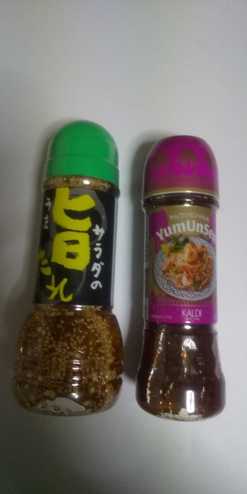 良くいくショッピングセンター内のスーパーのそばにカルディが有るので、週に一回くらい(2回の時も)寄りますが、見ると欲しくなるため頻度を減らし中です(笑) 主にたれやドレッシング、お菓子などを買ってます 経営がキャメル珈琲なのにね 旨たれとヤムウンセンドレッシングなるものを購入 旨たれは醤油ベースにニンニクとごまの風味が効いてるもへじさんの商品なんですが、片方はタイ語なのか?ヤムウンセンて何ぞや??製造元タイじゃなく静岡県なんすけど…(笑) 和製タイ風のドレッシングなんでしょうか? ちょっと酸味が効いてて春雨サラいけそうですよね 買って無いけど、豆乳ドレッシングとかもあるみたい 昨日の朝食兼早お昼ご飯です 最近麺ばっかりな気がする 暑くなってくるとピリ辛味のが食べたくなって困る💦