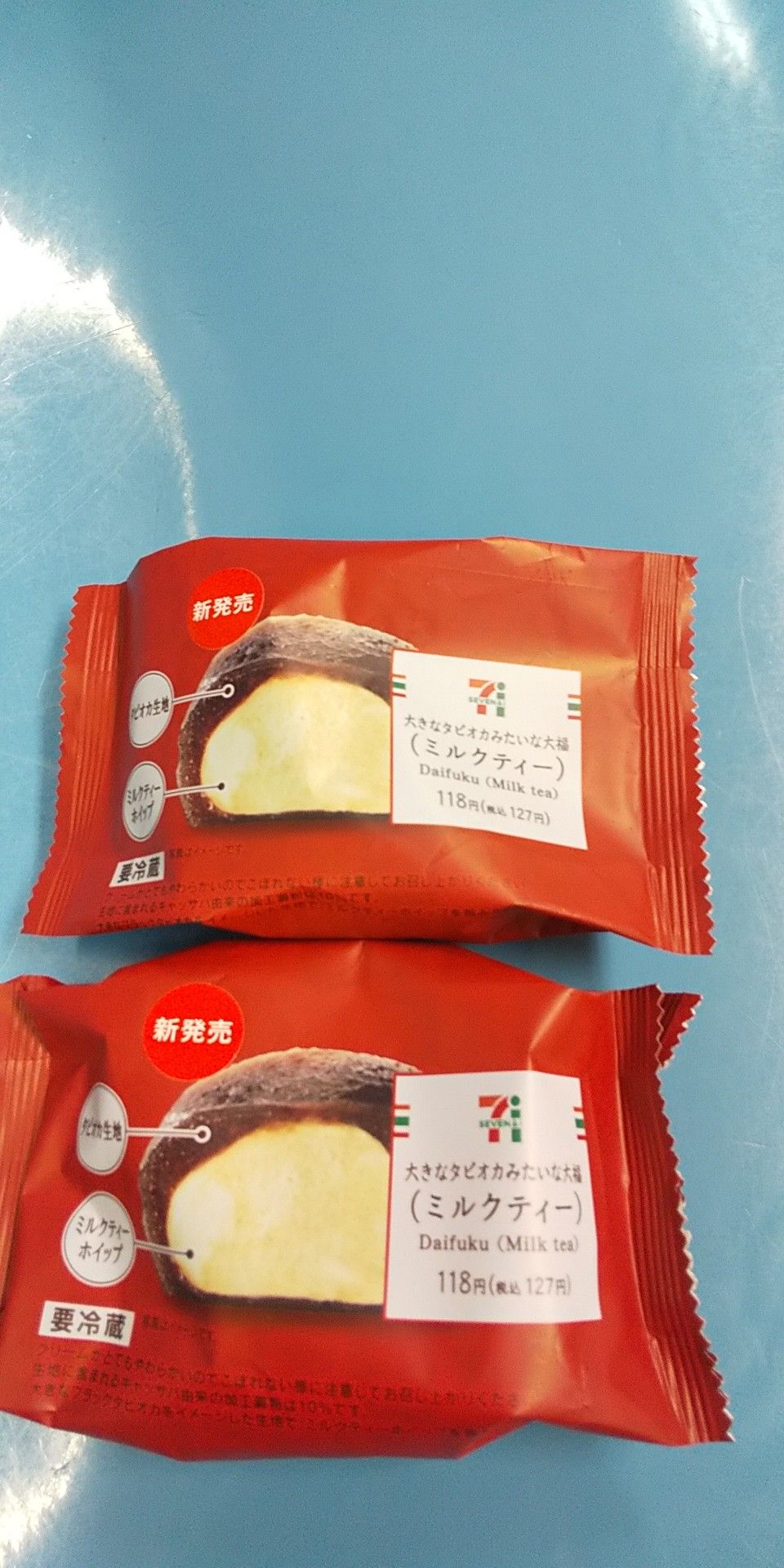 下のはセブンの大きなタピオカみたいな大福(ミルクティー)