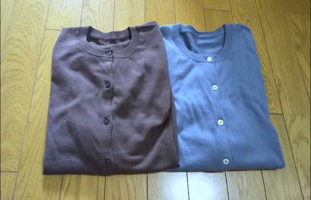 オーガニックコットン100%七分袖カーディガン(ブルーとブラウン)や靴下を