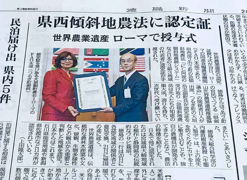 今朝の徳島新聞です♪徳島県西部の「傾斜地農法」の世界農業遺産の認定証、ローので授与式のニュース♪ヽ(^o^)丿今朝も快晴です♪家の近く、吉野川市アメニティセンターの駐車場から・・・!!吉野川「岩津の淵」・・・そう、アメリカンステーションの駐車場からパチリ!!「日替わりランチ」は「チキンピカタ」と「サバの味噌煮」でした♪「チキンピカタ」です♪さやえんどうも・・・!!右「サバの味噌煮」♪左「肉じゃが」と「白和え」♪美味しくいただきましたヽ(^o^)丿