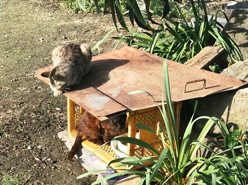 おはようございます♪午前5時起床、鉛筆画を描きます!!世間では今日から連休スタートのところも多いですネ♪私は仕事・・・庭にクロネコが3匹・・・でも・・・茶髪になっていて・・・クロと呼んでいいのかどうか・・・(笑)♪雑種のクロだから・・・クロかったり・・・突然茶髪になったりと・・・近所の血統書付きのクロネコは、やっぱりきれいな黒色の毛をしています(●^o^●)♪今日は納品が中心です!!明日は剣山の山開き・・・仕事も兼ねて撮影に行きます♪クロたちが食事をしている時・・・あずき、だい吉、トラは・・・実は・・・右手にうちの母がいるのです♪ニャンコ達はあとをゾロゾロ・・・(●^o^●)♪