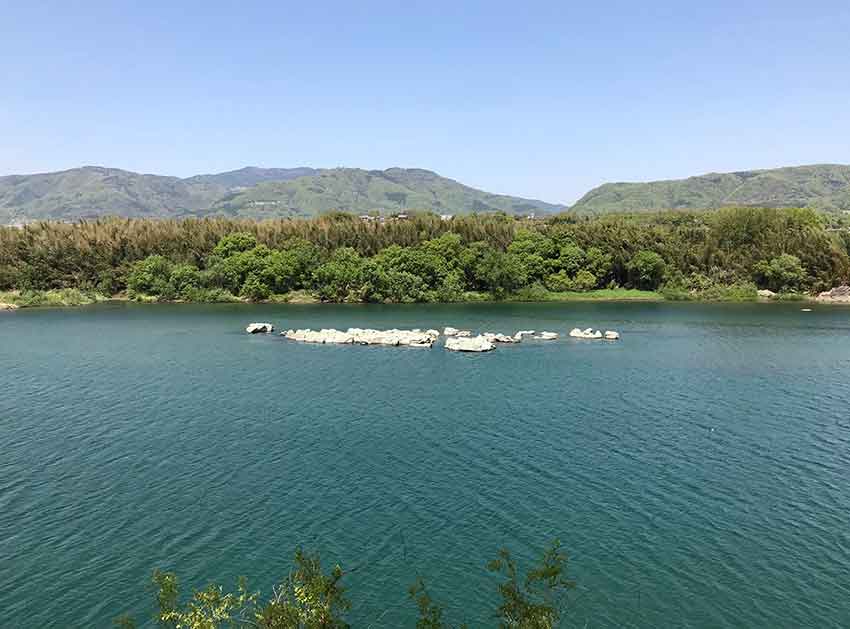 吉野川「岩津の淵」・・・快晴です♪午前中、徳島市・鳴門市へ行く予定が急遽吉野川市山川町へ・・・。昼食も山川町のアメリカンステーションでいただきました♪「日替わりランチ」は「豚肉のスタミナ炒め」と「ちくわ磯部揚げ」でした(●^o^●)♪「豚肉のスタミナ炒め」です♪ごはんによく合います!!「ちくわの磯部揚げ」です♪中にオクラが入っています!!(●^o^●)♪今日はこんなに晴れているのに・・・週間天気予報は、土曜日の午後から雨に・・・ハァ・・・
