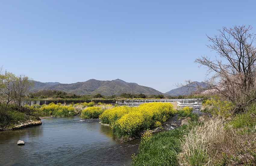 おはようございます♪午前5時起床、鉛筆画を描きます!!今朝の写真は、阿波市の「日開谷川」です♪河原に菜の花が咲いています!!阿波市の阿波町と市場町の境を流れています♪徳島・香川県境の「讃岐(阿讃)山脈」から流れだしています!!県道2号津田川島線が川と並走しています♪この辺りは扇状地になり、礫層が堆積しています!!いつもは川の水は地下を流れ、地上にはあまり流れていません!!この「日開谷川」は吉野川北岸では比較的大きな川で、水量も多い方です♪桜並木ですヽ(^o^)丿