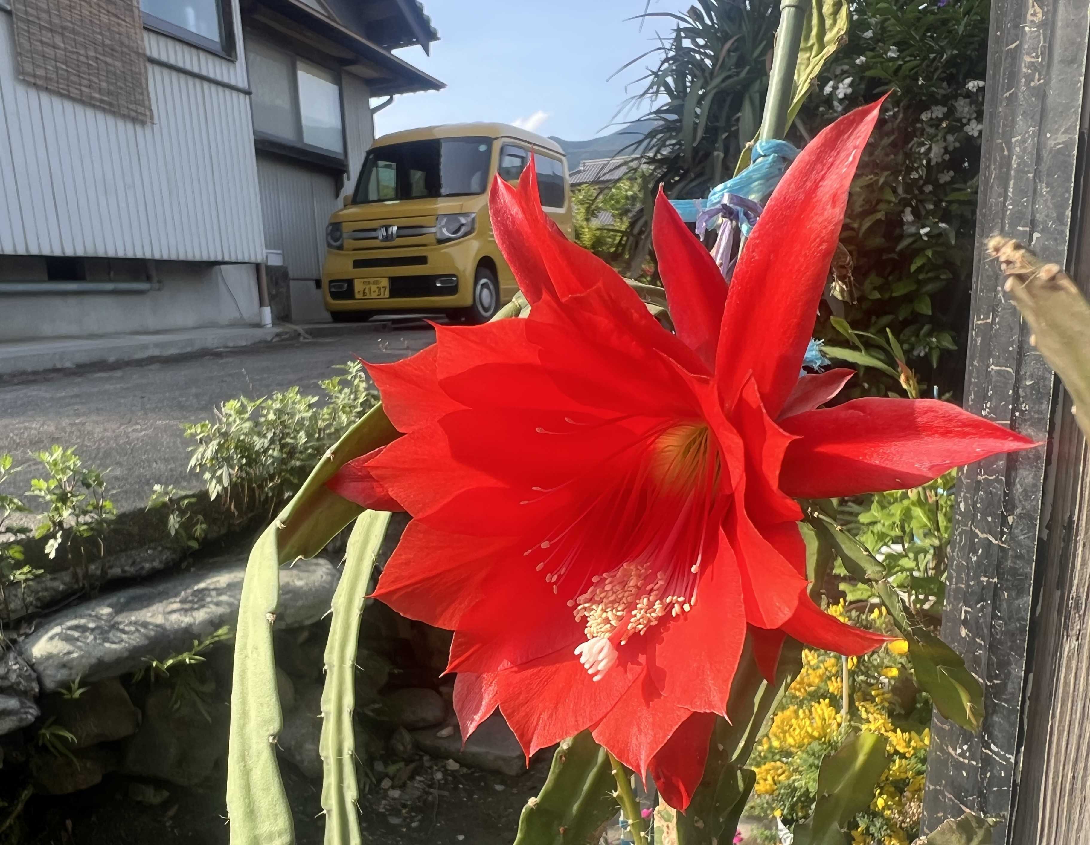 サボテンのような植物に赤い花が咲きました‼︎毎年咲いているのに、名前が覚えられない\(//∇//)\晴れの朝となりました。ニャンコ達は相変わらずです。昼食はローソンの「ねぎのせロースカツ丼」です。お米とカツが食べたくなります。568kcalはOKでしょう\(//∇//)\カロリー表示を見ながら購入しています。