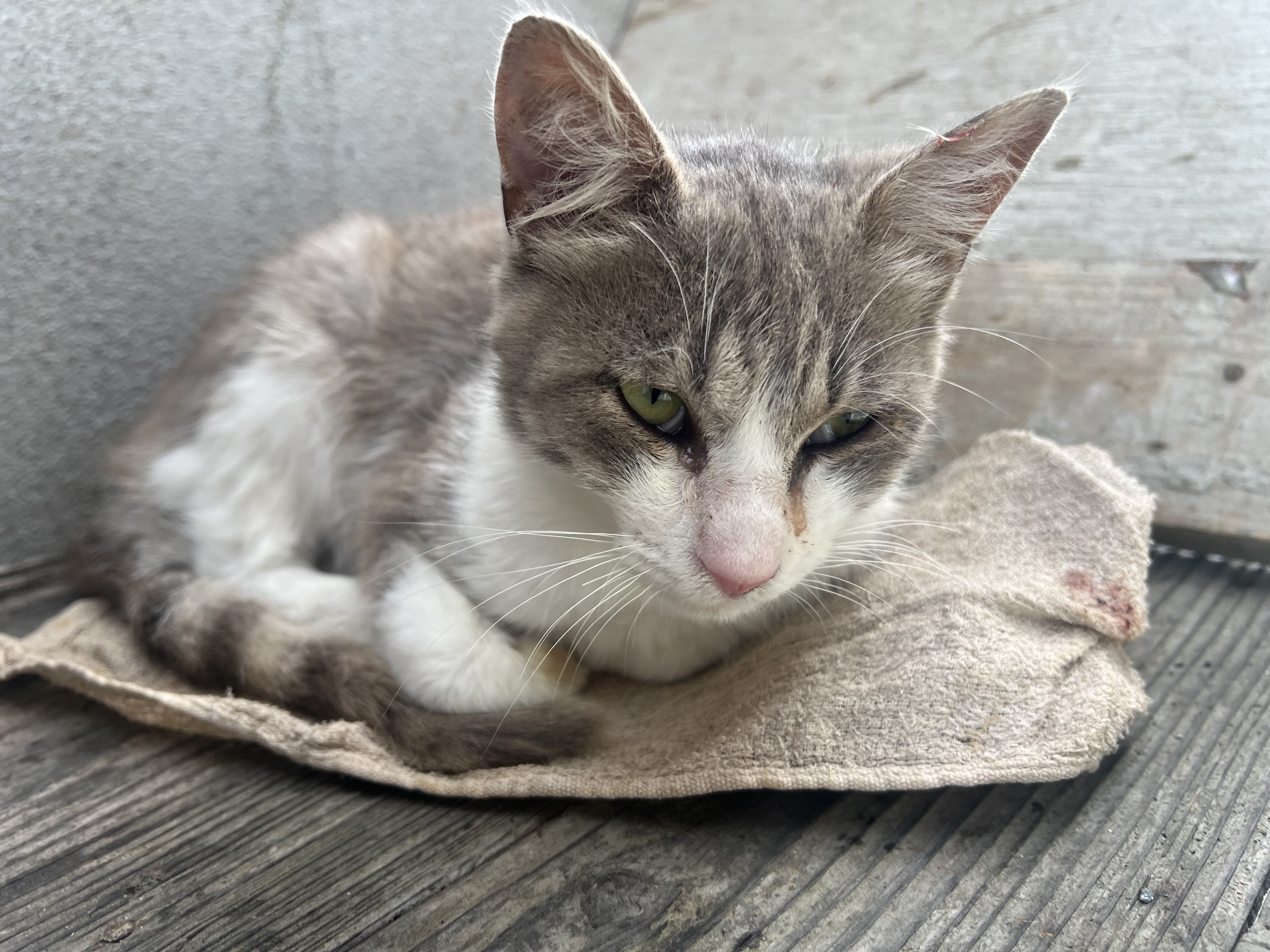 勝手口にいたノラニャンコです。今朝は触っても怒りませんでした‼︎曇り空の一日でした。蒸し暑いです。吉野川市議会議員18名が決まりました。皆さんに頑張っていただきたいです♪昼食はローソンの「焼ビーフン」と「玉ねぎサラダ」、「シーザードレッシング」で計428kcalです。体重が少しずつですが減ってきています。リバウンドしないよう頑張ります。
