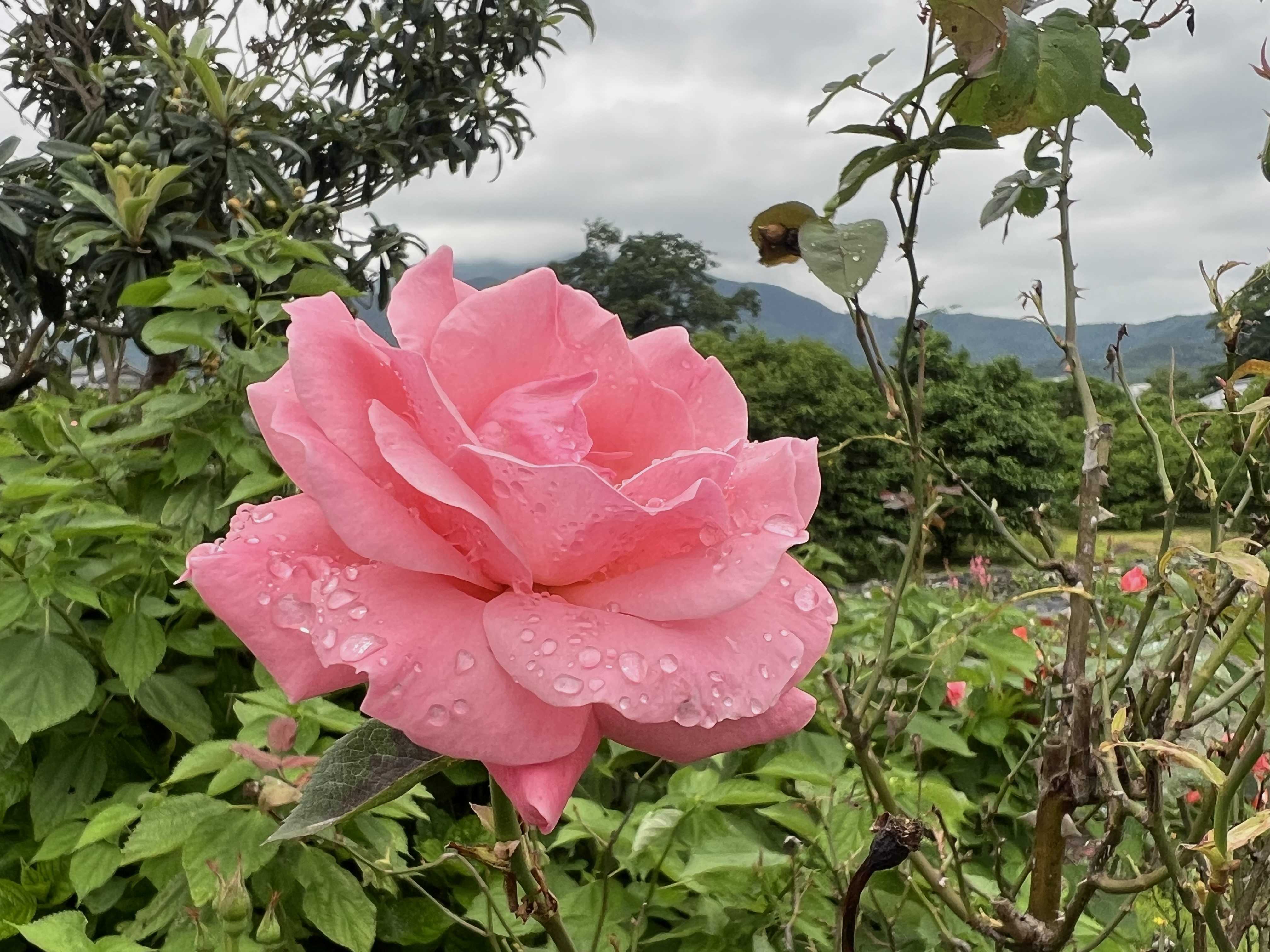 曇り空の一日でした。昨夜の雨がバラに‼︎このアジサイ、白い花なんです。月末の金曜日、午前中は忙しかったです。納品は吉野川市山川町で終わり。吉野川市山川町のカフェレスト「シェフ」で昼食です。「生姜焼きセット」をいただきました。夜、お通夜へ。明日は告別式です。