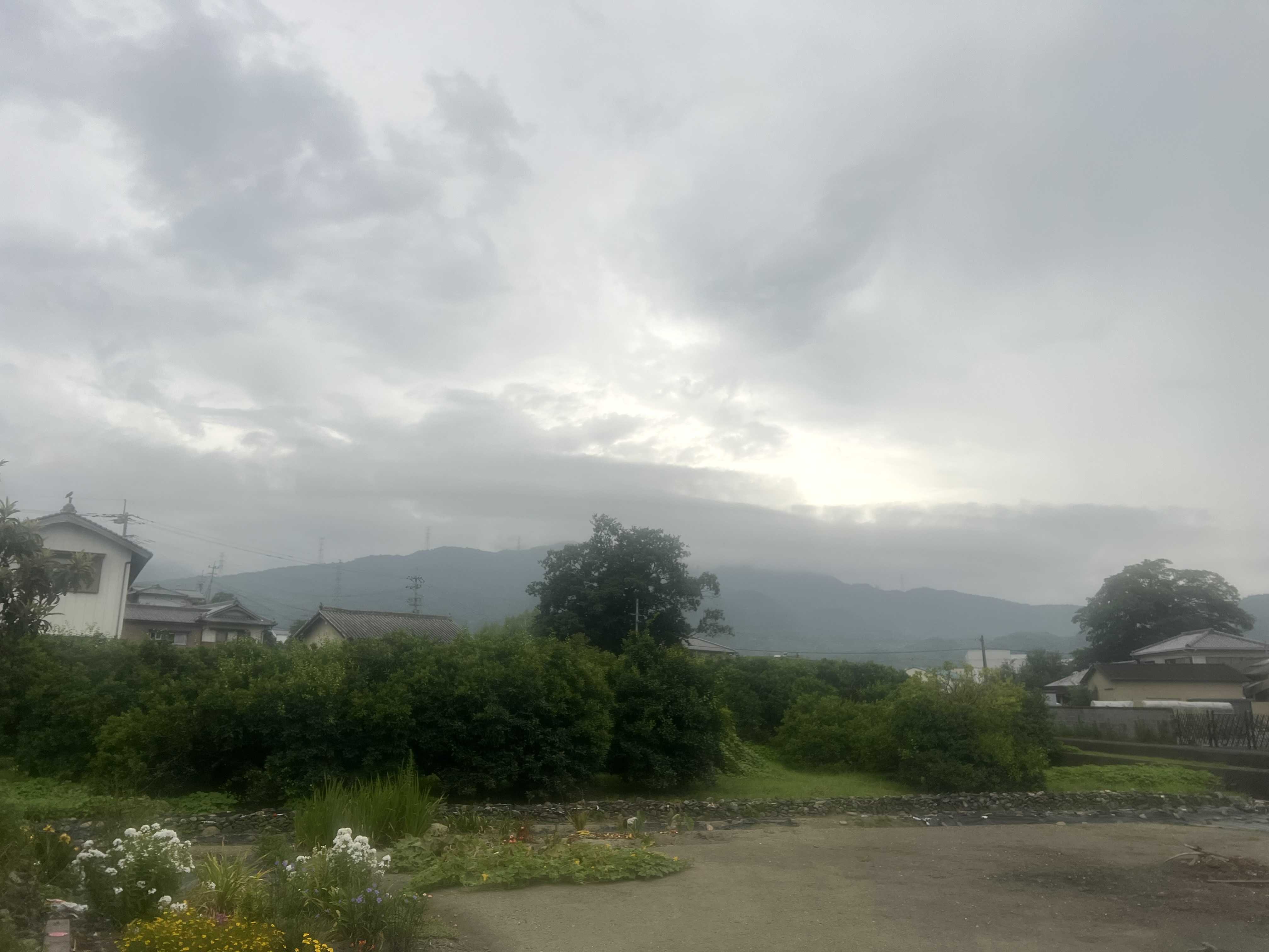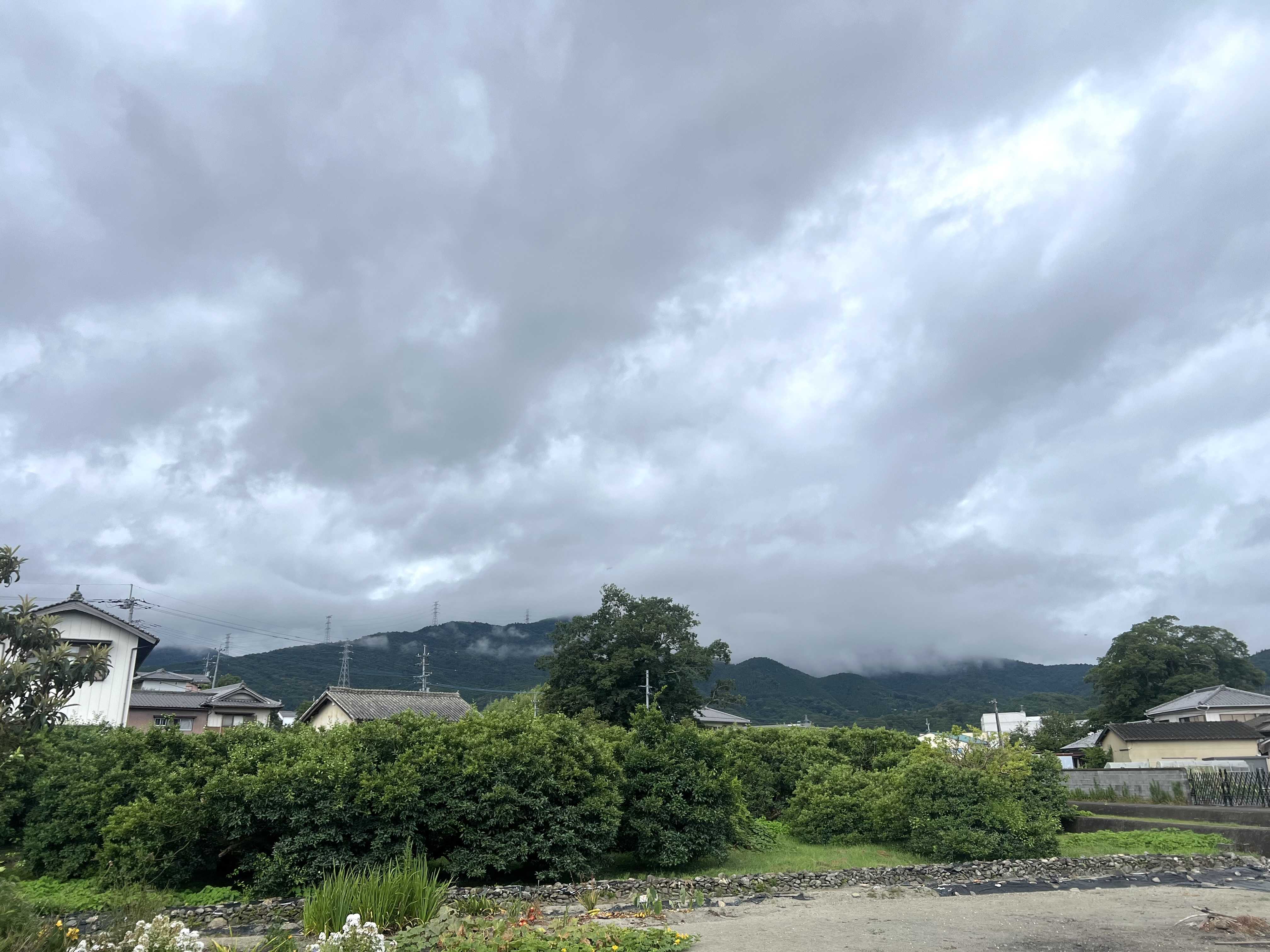 見るからに蒸し暑つそうな空です‼︎湿度は堪えます\(//∇//)\ニャンコが可哀想です。近藤真澄絵画展「光と影」♪昼休みに昼食を兼ねて訪れました。不思議な感覚です。「ホットサンドセット」をいただきました。午後2時、阿波市土成町でにわか雨。
