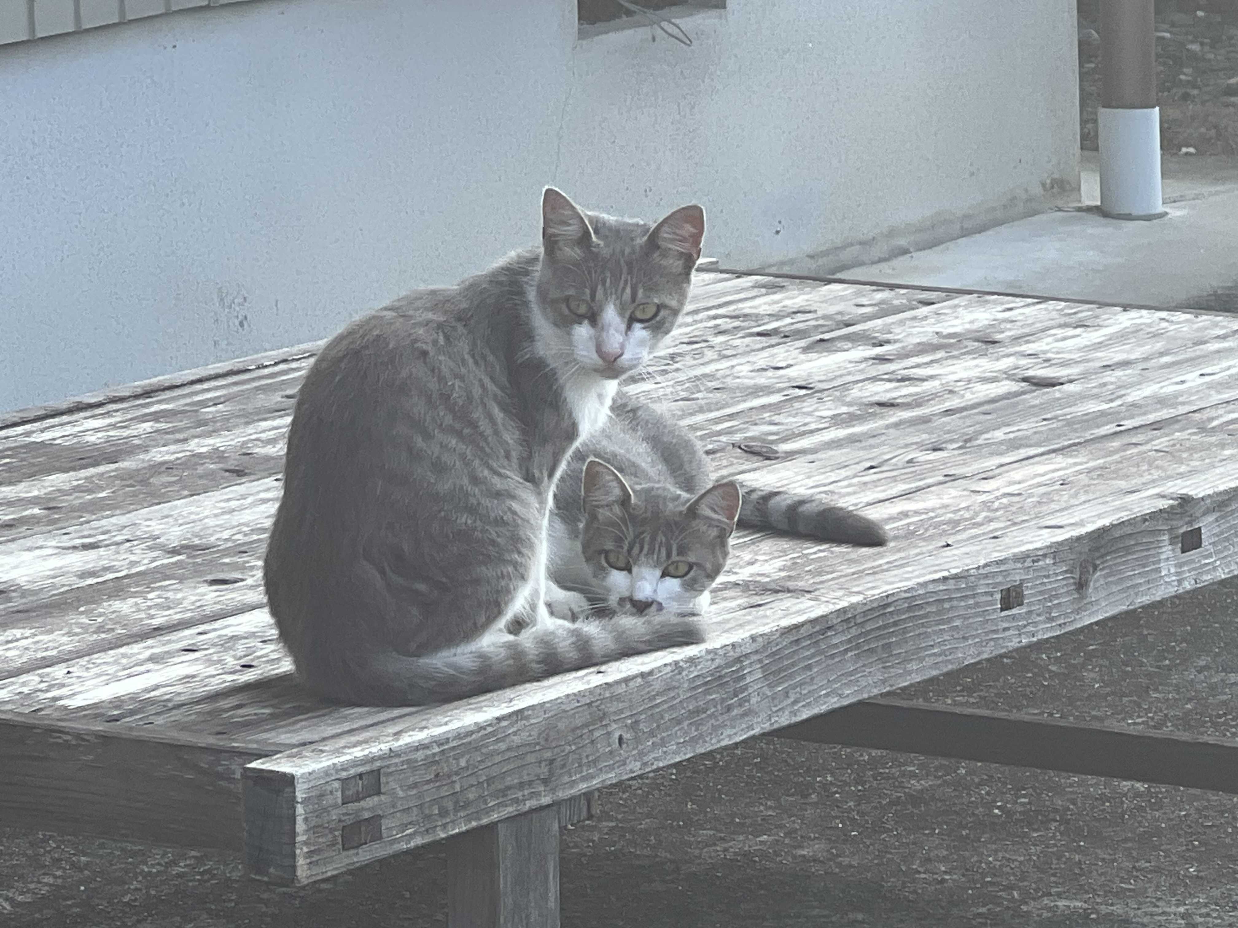 今日も晴れ、暑い日が続きます。少し涼しい朝は、ニャンコ達にとってはホッと出来ます。気持ち良さそう。車が近づいても知らん顔しています。降りてどかさないといけません\(//∇//)\つるぎ町の道の駅「貞光ゆうゆう館」で昼食です。二つある「日替りランチ」の一つは売り切れ。もう一つは「メンチカツ」でした。