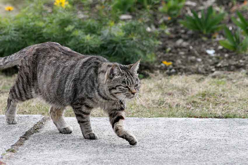 今朝のニャンコは・・・こちらへやって来るトラ母さんです♪