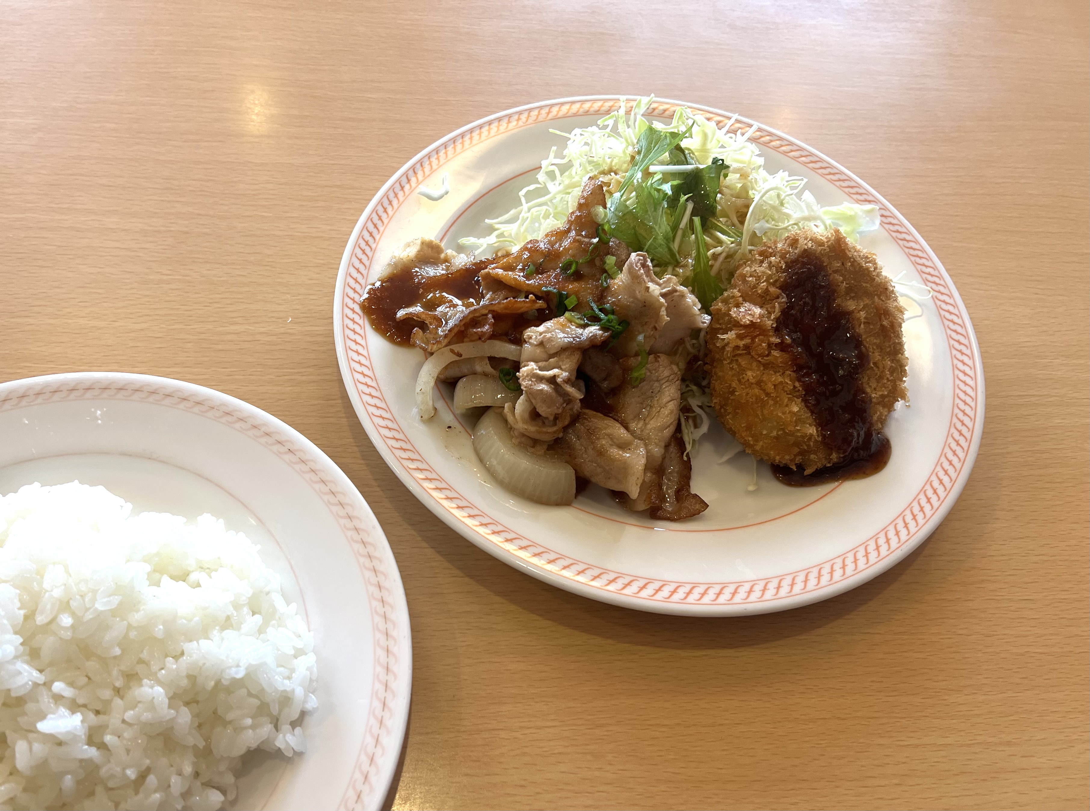火曜日の「日替りランチ」は「豚肉の甘辛炒め&ポテトコロッケ」でした。