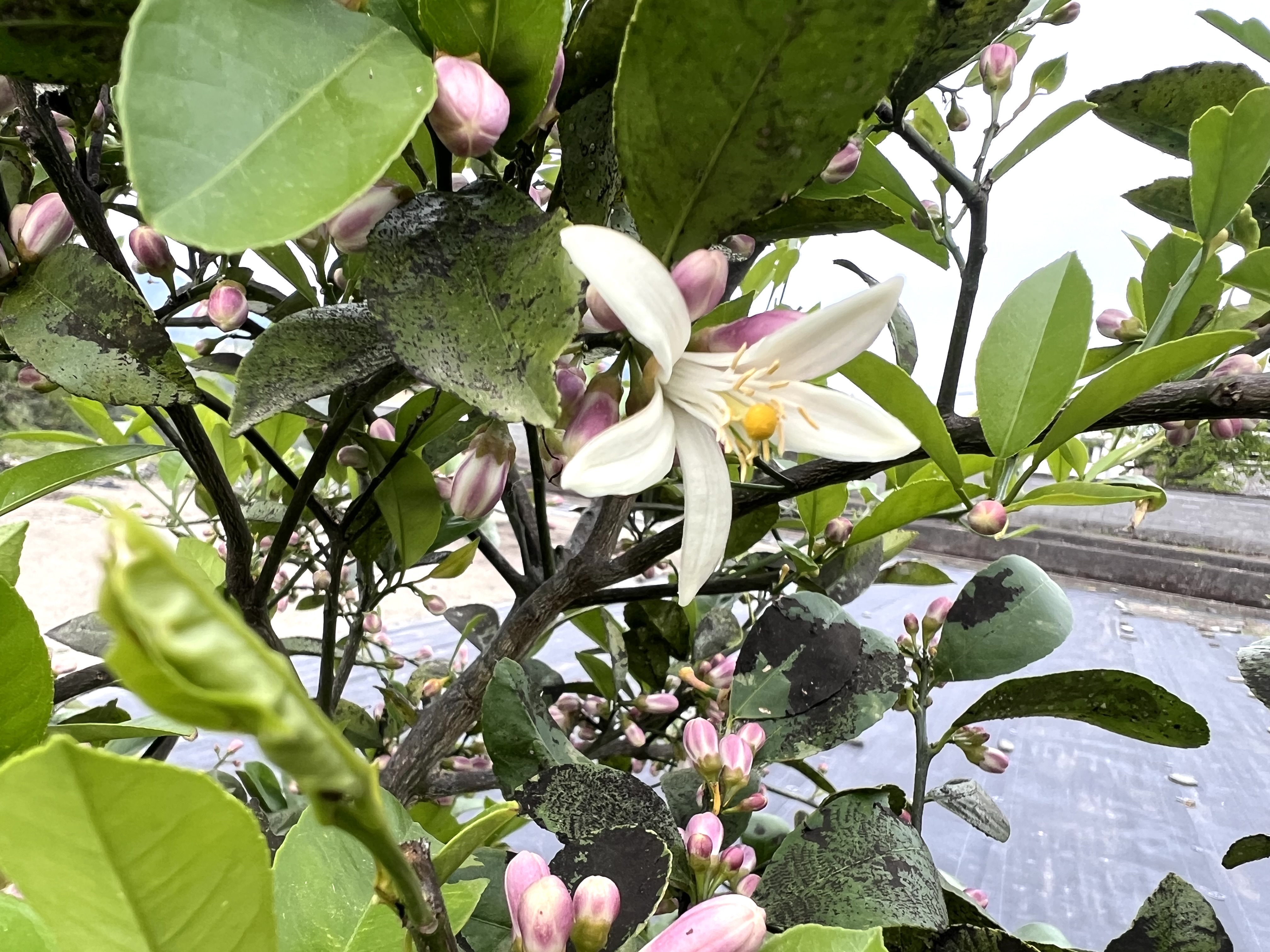 隣にあるスダチはまだつぼみがポツポツくらいです。