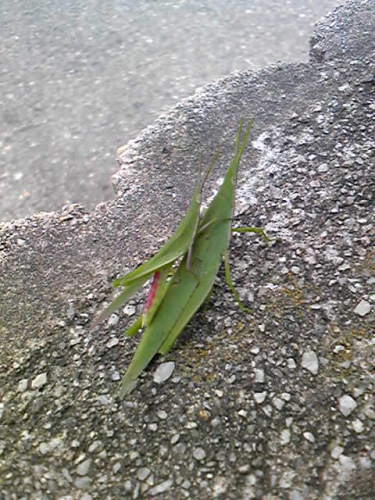 草刈りをしていたら、驚かせてしまったようです。おんぶバッタ、うっかり道に出ちゃった。危ないので草むらに追ってやりました。で、その草むらは家の庭なので・・・けっこういらん気を使う羽目に。過ごしやすい気候になり、はかどるかと思いきや。