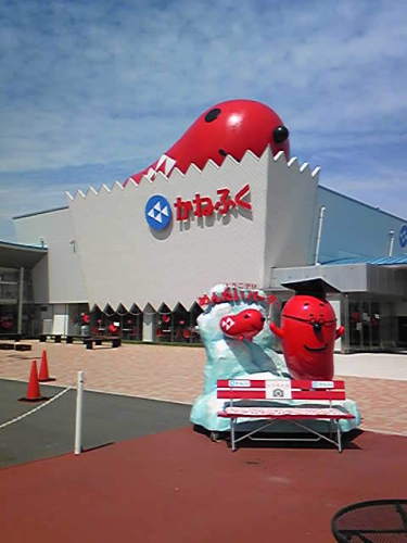 かねふくの めんたいパークとこなめ に遊びに行ってきました~コストコ中部空港倉庫店の隣です。初めての入館なので、500円払ってミュージアムにも。団体客なし、家族連れも少なく、有料区域はほぼ貸切状態でしたので・・・いい大人も遊び放題♪工場見学はガラス越しに。これでスケトウダラ何匹分の卵だろ・・・(と、想像すると この後食べづらいのだ)これ↑は巨大明太子の実物大模型ですが試食品をいただいているうちに「やっぱり白飯といっしょに食べたい!」・・・と、なりますわね。フードコートで、できたて明太おにぎり(380円)を購入比較するものがないのでわかりにくいけれどこれもけっこうな大きさです。明太子一腹分と、それに見合うご飯量。デザートに明太ソフトクリーム(350円)ぷっちぷち♪ ウエハース代わりに明太海老せんべいがささってました。濃くておいしいソフトですが、後からじんわり辛さがきます。ひょっとしてやみ付きになるかも。はぁ~食った食った、遊んだ遊んだ~!