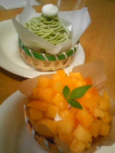 お昼過ぎに市からの緊急情報。台風18号の接近に備えて、夕方18:00から避難所を開設する、とのこと。最寄の公民館も指定されていたので気になったけれどその公民館、我が家より低地な上に耐久性もちょっと疑問なので・・・夜は自宅でケーキ食べて過ごしました。奥、抹茶モンブラン。手前、KAKIKAKI は、柿の季節限定だけどこれでもかってくらい、柿乗ってます。(柿をそのまま食べたほうが割安で早いかもよ・笑)外は思ったより静かよ・・・嵐の前のなんとやら?