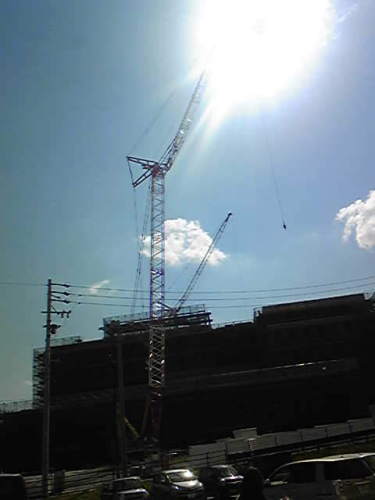父の通う病院の新築工事。隣のスーパーに行くたびに駐車場から定点撮影しているのですが今日は日が高くてまぶしすぎ・・・カメラ片手に ためつすがめつ、立ったりしゃがんだりそれなりに良く撮れる角度を模索中・・・(↑ 模索の結果・・・)と、背後から「撮れますか?」と男性のちょっとステキな声。家人がまたかっこつけてんな・・・と思うも「いやぁ逆光ですね」と笑いながら振り向いたらじぇじぇじぇ!(←古)金髪モヒカンのおにいちゃん・・・よく見たら作業着姿だったので、現場の人だったのでしょう。気分のいい笑顔が印象的で、心に残りました。また、会いたいかも。(ギャップに弱いよな~笑)