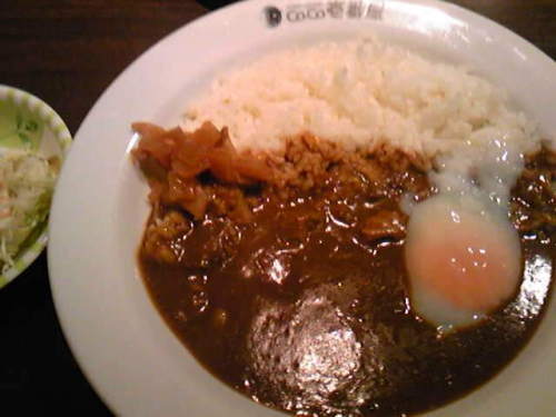 カレーハウスCoCo壱番屋。ビーフソース(1辛)・ライス200g・半熟玉子家人は 手打ちメンチほうれん草(2辛)・ライス300gシーザーサラダを追加して、二人で2000円ほど。たかがカレーされどカレー。開店当初に一度行ったきりのお店が随分垢抜けた雰囲気になっていて軽いめまいを覚えました(笑)渋めの内装でジャズを聴きながらココイチカレー・・・の昼。