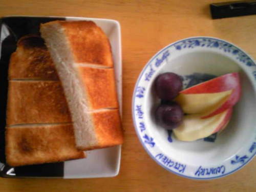 11日だから、というわけではないけれどバナナ一本を縦に割って並べてみた。バナナ&チーズ(バター)の微妙な甘じょっぱさが家人には斬新だったらしい。私には、懐かしい組み合わせなんだけどね。蔵出し朝ごはん画像のっける形式続行中。(たま~に挟んだり別にしたり)