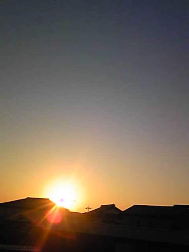 台風一過の朝全天清々しく晴れた空 新しい日の出