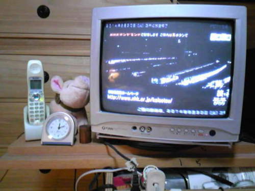 ご覧の放送は、2014年9月30日(火)正午をもってご覧いただけなくなります引き続き地上放送をご視聴いただくには、デジタルテレビへの買い替え、またはSTBなどのデジタル受信機の設置が必要です詳しくは、株式会社C●Cまでご相談ください。と、いうわけで上下に流れる黒い帯のテロップともそろそろお別れ。30日正午をもって・・・デジアナ変換放送 終了。(実際には12:02)最後まで見届けました。14年前に7800円で購入したブラウン管テレビ。まだ働けるのに、強制終了ですわ。さて、この後はどうしよう~(デジタルテレビを買うか、受信機を設置するか、いっそのこともうナシでいくか)この夜就寝前にちょっとニュースを観たりする習慣が意外にも染み付いているってことに、気が付きました。やっぱり、買い替え・・・?