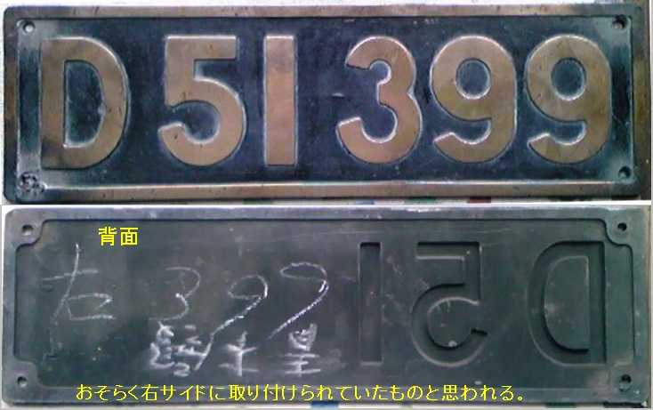 D51(デコ(ゴ)イチ)と呼ばれた汽車のプレートです。