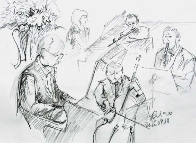 小さな音楽スクールの発表会を覗く機会を得ました。生徒さんは小さな子供から大人まで。ピアノをはじめいろいろな楽器、声楽など幅広い学修分野。発表会は練習努力成果を確かめるためや舞台での経験を積ませるためなのであろう?小生の関心を惹きつけたのは中高年の男性出演者たち。限られた時間の中での演奏に集中する姿に感動しました。ピアノ、チェロ、クラリネット、フルート、などなど、、、一生懸命演奏する爺ちゃんおじさん(失礼!)達に拍手しました。各自5分程度の短い演奏でしたが、世の中いろいろ頑張ってる人がいるもんだなあ~?と改めて感心すると同時に、当方も何か励まされたような気分でした。後方の女性はピアノ伴奏する教師です。